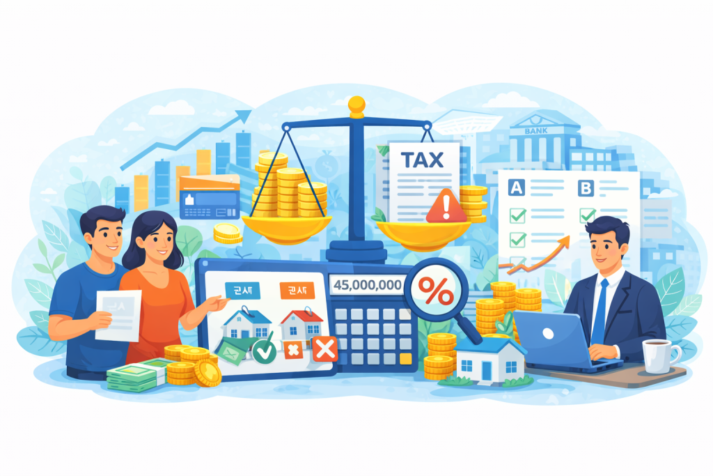 같은 소득이나 자산 조건이라도 적용 기준에 따라 부담 수준은 완전히 달라질 수 있습니다. 이 페이지는 세금·금융과 관련된 다양한 상황에서 사전 판단과 비교를 돕기 위한 계산기 허브입니다. 각 계산 결과는 확정값이 아닌, 부담 수준을 가늠하고 방향을 판단하기 위한 참고 기준으로 활용해 보세요.